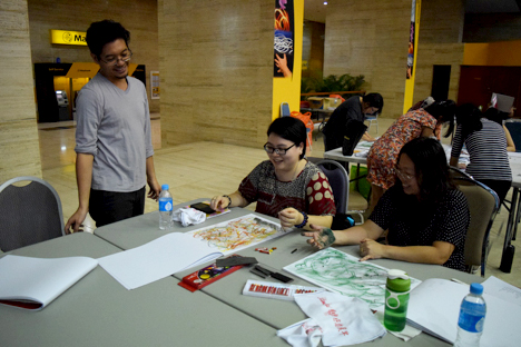 The participants then straight away began their lesson and were taught the basics of abstract art with the help of fellow local collaborating artists such as Badruddin Syah Abdul Wahab together with Marisa R Ng, Syahrul Niza Ahmad Zaini and Norlisham bin Selamat.