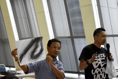 The workshop was officiated by the CEO of Maybank Foundation, Shahril Azuar Jimin, together with the Head of Corporate Responsibility and Maybank Foundation Secretariat, Ahmad Faezal Bin Mohamed and the curator of the exhibition, Tan Sei Hon. Tan Sei Hon, who is also one of the artists at the workshop, kicked-off the event by sharing the techniques and approaches in abstract art.